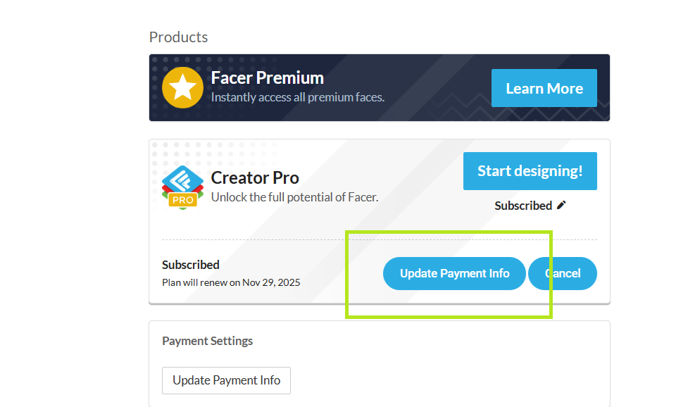 Face PRO is cancelled a different way . I thought you had Emailed Facer about your Profile Login .