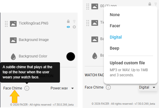 I am confused now, is there supposed to be some other chime feature, than the one I can see as setting on bottom of elements list of my no-pro (free) beta creator and that does not change anything, when the face is loaded on my Tizen watch?