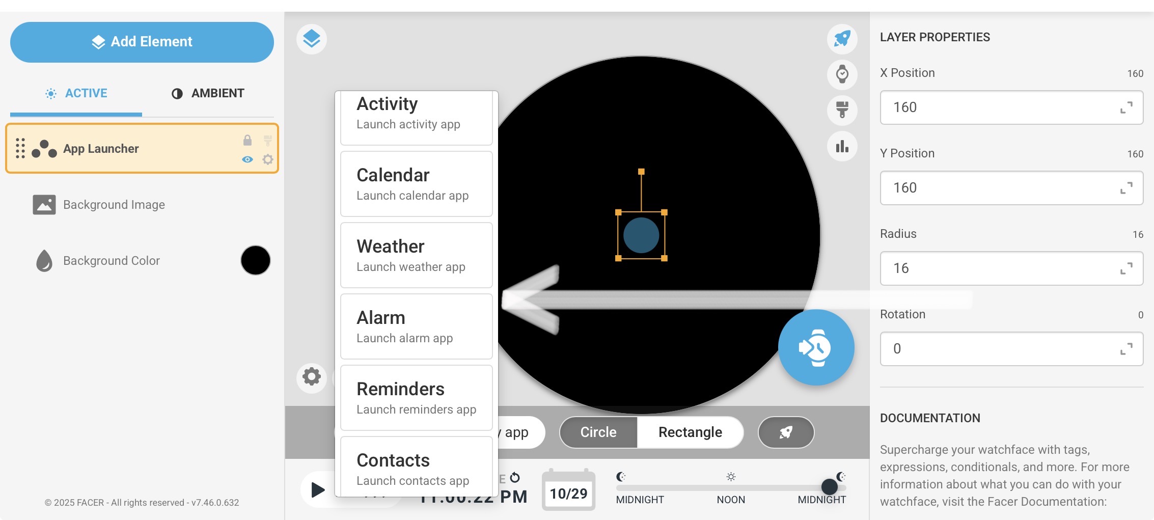 Yes in Facer creator on wos 5 that was possible but not on wos 6 (wff) anymore, then you got the error msg in creator. But the launcher still works on wos6, you can not customise the links , only the default apps from the menu. In wfs you also can’t hardcode app launches on wos 6.