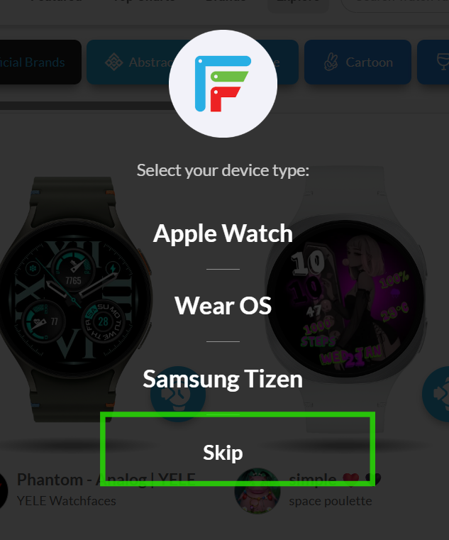 Make sure you have the correct watch selected in the Facer App, that has been updated with WOS6. I can see your design without hitting the skip button.