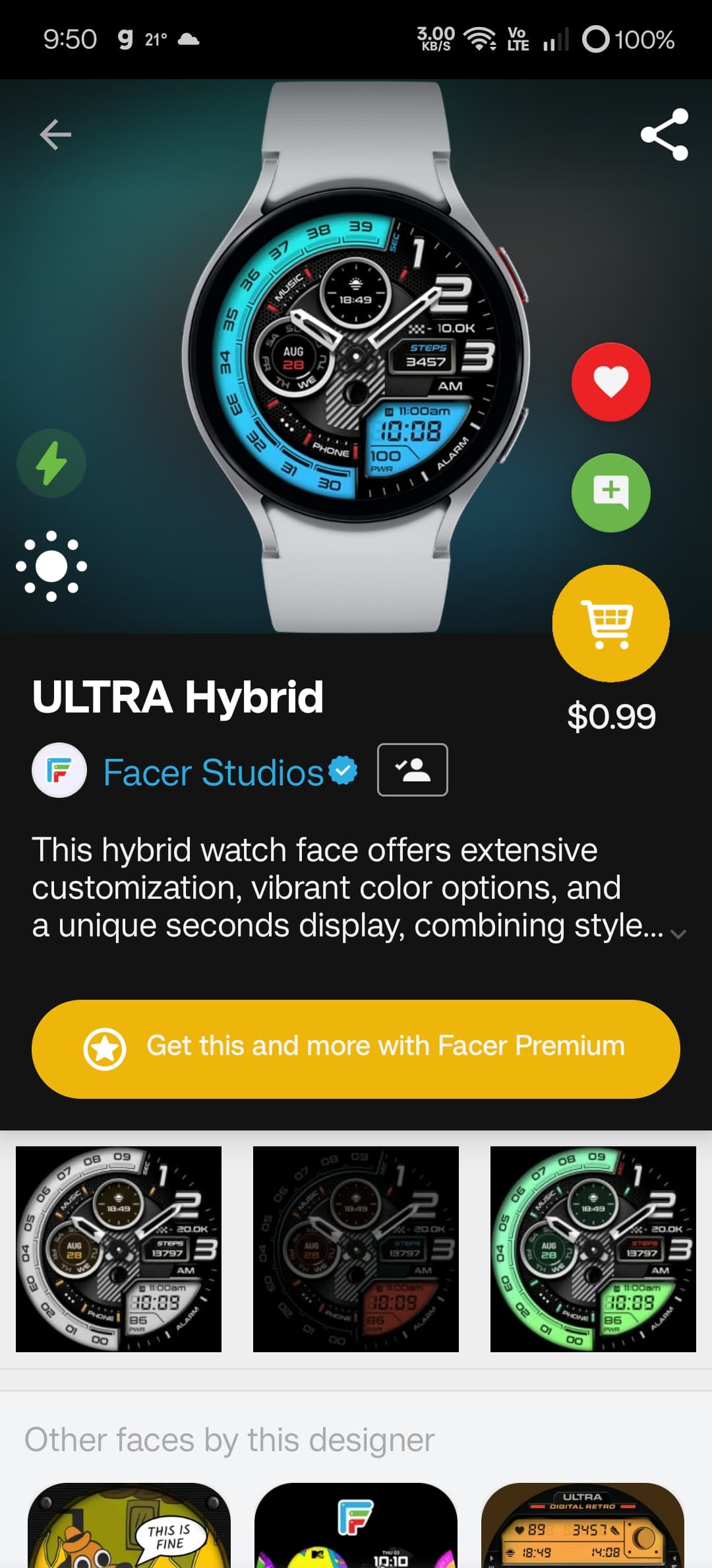 - Can’t change color theme from Facer app, only on phone which is slow and cumbersome