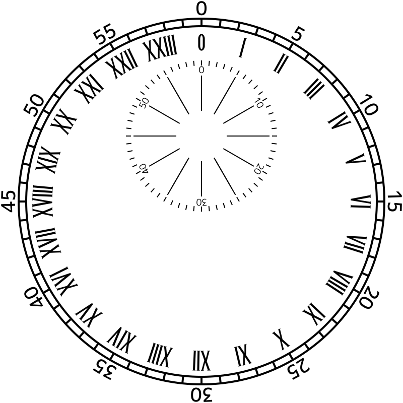 Happened across a posting from a guy that made a desktop clock of this. I totally understand his lament about finding a matching font for this that and the other thing, especially the Roman numerals. I suspect all versions of this clock face were hand lettered.