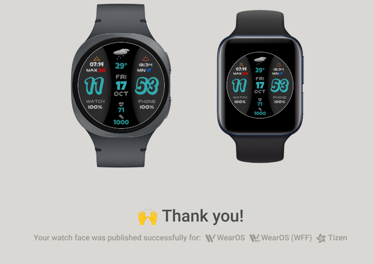 I published this face without WFF compatibility because I wanted some of the features WFF lacks. Namely the phone battery, sunrise/sunset times and Day/Night weather icons.